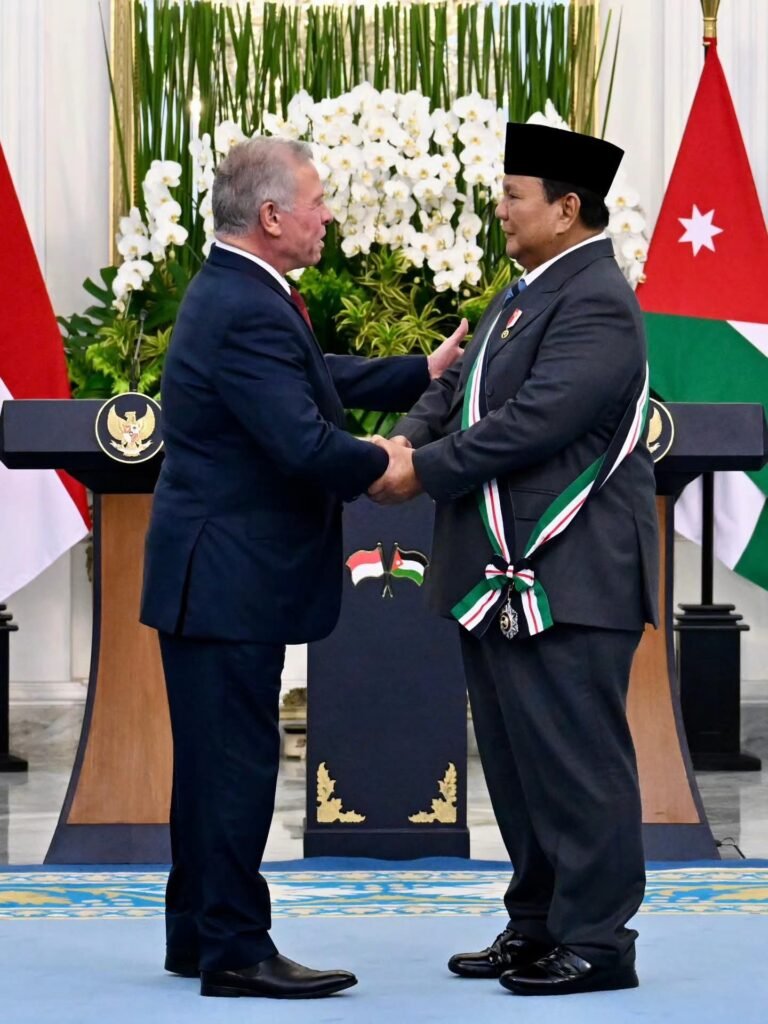 Raja Abdullah II juga mengenang hubungan yang telah terjalin sejak masa mereka sebagai prajurit. Kedua pemimpin mengungkapkan rasa bangga dan kehormatan terhadap ikatan yang dibangun selama bertahun-tahun. Di penghujung pertemuan, Presiden Prabowo dianugerahi penghargaan “The Bejewelled Grand Cordon of Al Nahda” oleh Raja Abdullah II, suatu penghargaan terhormat yang menunjukkan betapa pentingnya hubungan ini bagi kedua negara.